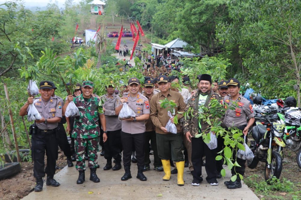 jatimnow.com - Polres Trenggalek bersama Wakil Gubernur (Wagub) Jawa Timur, Emil Dardak melakukan penanaman 5500 pohon lintas generasi secara serentak di 19 lokasi, Jumat (10/1/2020).