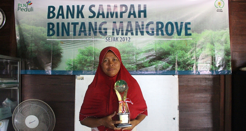 “Setiap hari penduduk di sini kami ajak mengumpulkan sampahnya sendiri, memilahnya dan menjual sampah yang sudah kami tentukan kategorinya di Bank Sampah Bintang Mangrove ini,” ujar Kusniyati salah satu kader lingkungan Kampung Gunung Anyar Tambak.