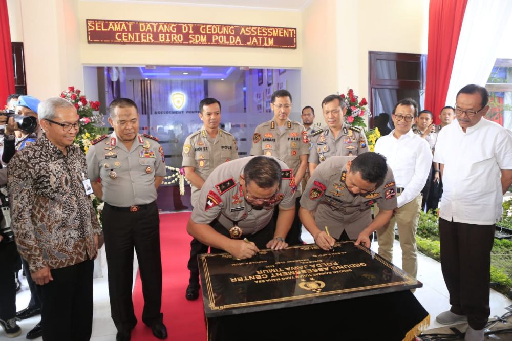 jatimnow.com - Asisten SDM Kapolri Irjen Pol Eko Indra Heri didampingi Kapolda Jatim Irjen Luki Hermawan meresmikan gedung Assessment Center Polda Jatim, Jumat (7/2/2020).