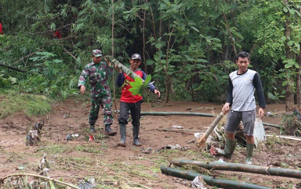 "Desa juga turut andil. Jadi kerjasama semua pihak membuat bronjong sementara," ujarnya.