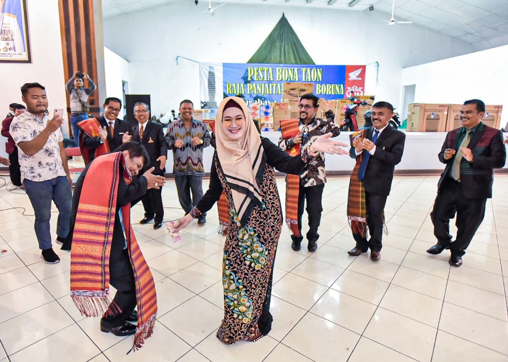 Suasana akrab Machfud Arifin dan istrinya bersama warga Batak