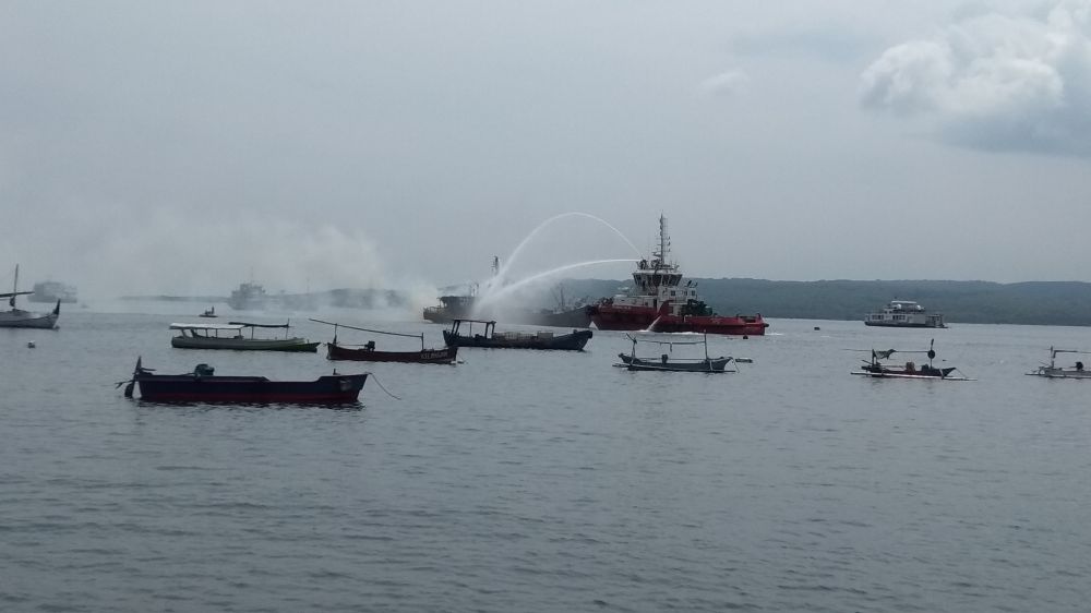 Api yang membakar Kapal Motor (KM) Victori Utama berhasil dipadamkan oleh kapal milik Pertamina dan Pelindo bersama jajaran Satpolair, SAR dan Tagana.