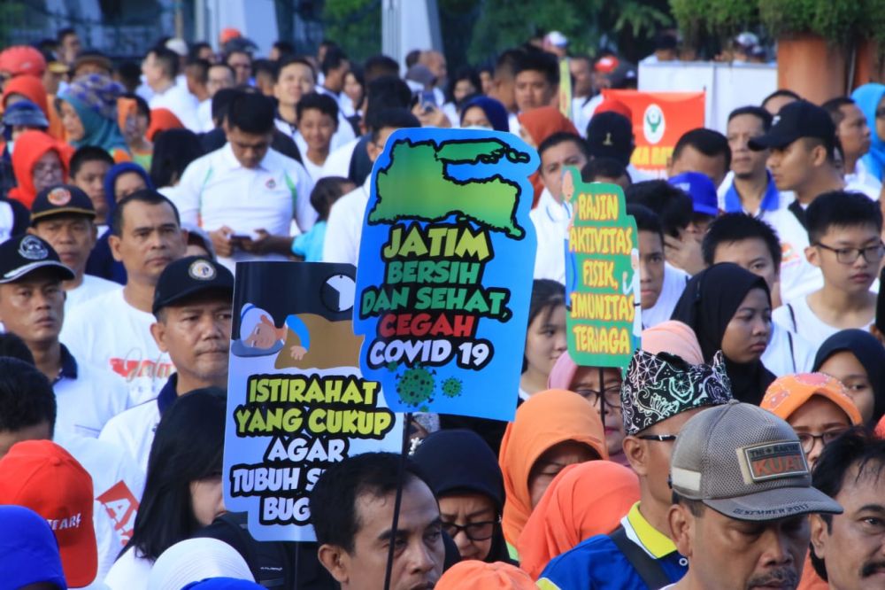 "Artinya kita bersama-sama menyampaikan pesan kepada seluruh Masyarakat Jatim, mari kita jaga diri kita, lingkungan kita pastikan sudah melakukan hidup yang sehat," pungkasnya.