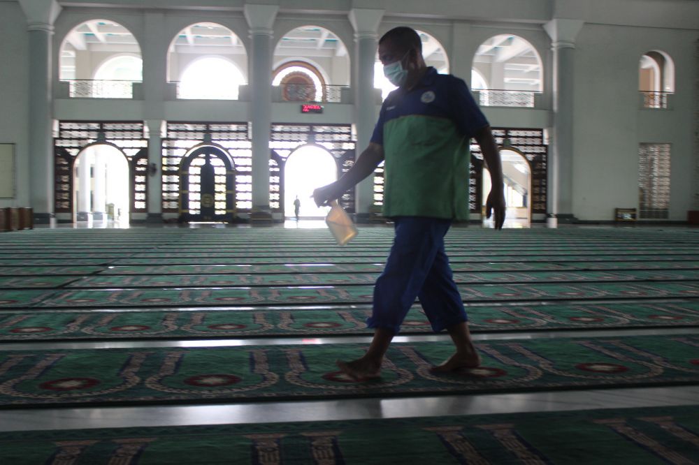"Sebelumnya kami membersihkan karpet masjid dua kali. Tetapi sejak virus corona merebak, maka kami tingkatkan jadi lima kali pembersihan masjid dan selesai satu jam sebelum salat digelar. Untuk lantai masjid juga telah dibersihkan dengan di pel," terangnya.