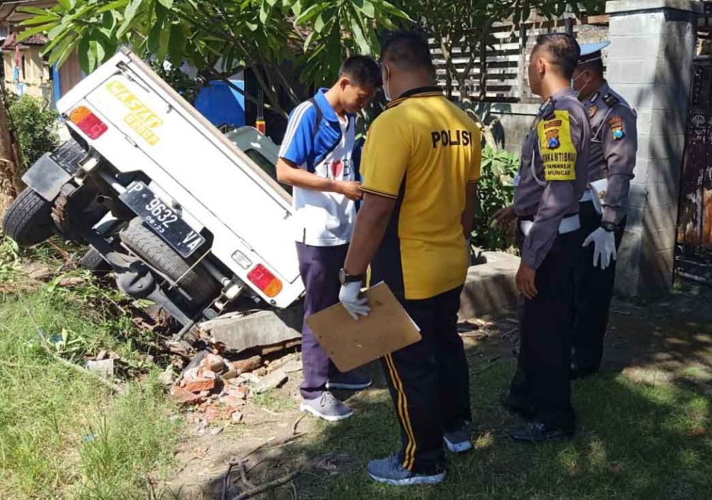Selain mengakibatkan pengendara motor tewas di lokasi, mobil pikap terperosok ke parit.