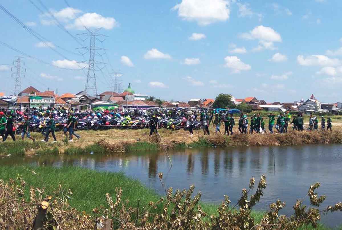 Dengan satu tujuan, ingin menyaksikan laga Persebaya vs Arema, para bonek mencari jalan alternatif menuju stadion yang dikelilingi tambak tersebut.