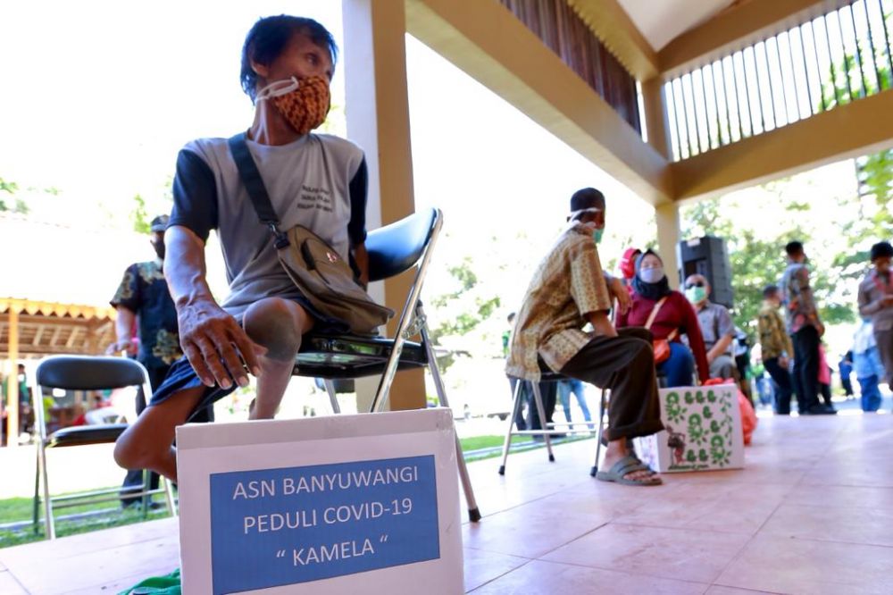 Bantuan itu secara simbolis dilakukan Bupati Abdullah Azwar Anas kepada para penerima. Terdiri atas pedagang kaki lima, penarik ojek online (ojol), dan warga disabilitas dengan menjalankan protokol kesehatan di aula Kantor Camat Banyuwangi, Kamis (9/4/2020).