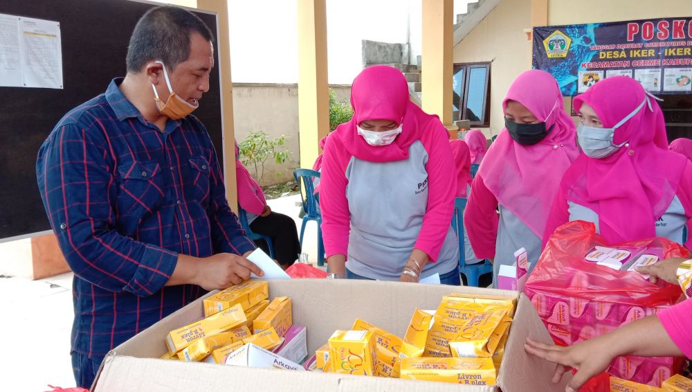 jatimnow.com - Pemerintah Desa (Pemdes) Iker-Iker Geger, Kecamatan Cerme, Gresik membagikan vitamin dan suplemen kepada ribuan warganya, Kamis (23/4/2020).