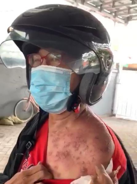 Dalam video berdurasi 23 detik itu yang dilihat jatimnow.com, seorang perempuan berkacamata mengenakan masker dan helm memperlihatkan bahu hingga dadanya yang terdapat bercak-bercak merah.