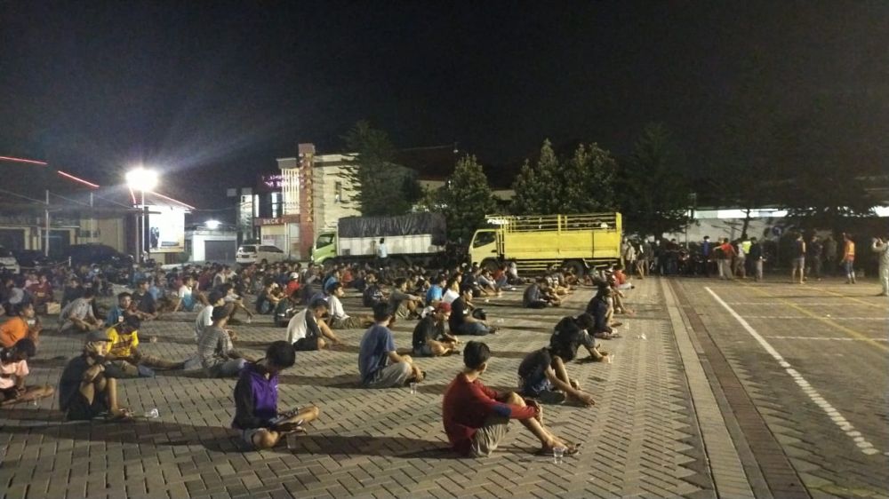 Ratusan anak muda beserta motor yang turut diamankan dalam razia balap liar kemudian dibawa ke Mapolresta Sidoarjo.
