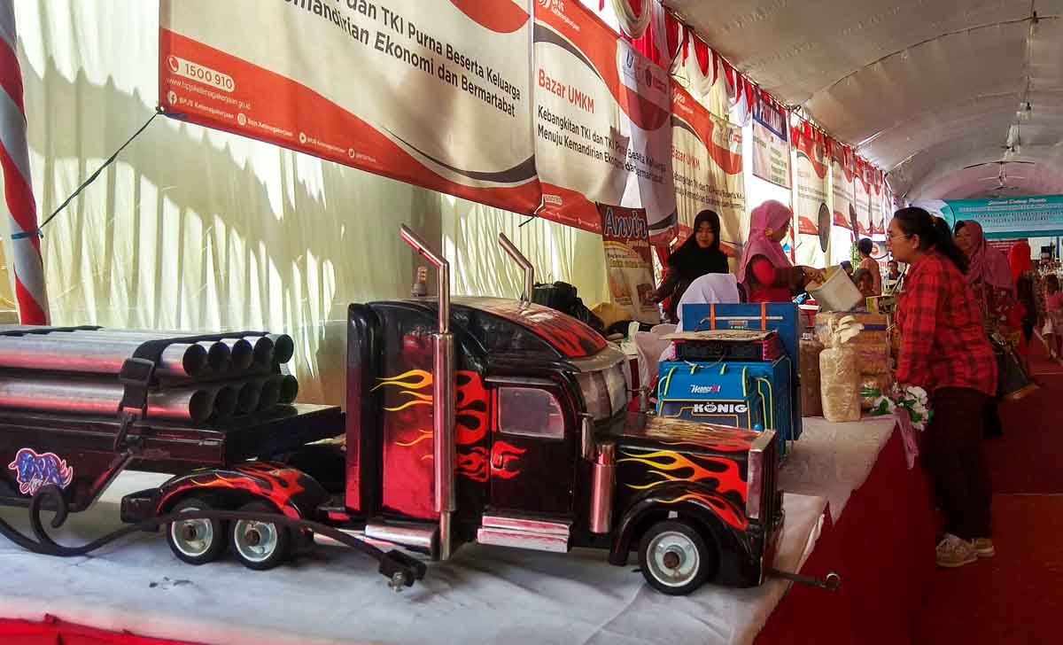 "Kalau truk ini hasil karya suami saya mas. Saya disini sejak kemarin (Jumat 12/05/2018)," kata Masriah (37) eks TKI yang bekerja di Singapura, dan Abu Dhabi, Sabtu (12/05/2018).