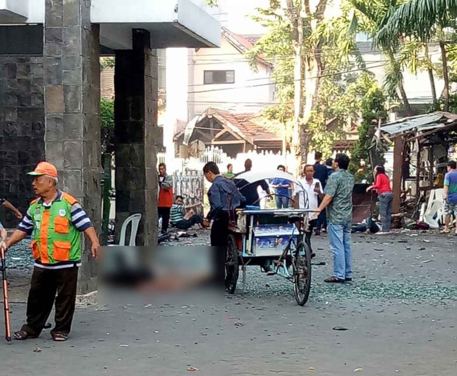 Warga panik usai terjadi ledakan disalah satu gereja.