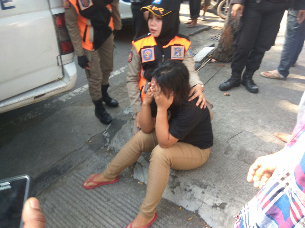 Warga yang ketakutan berusaha ditenangkan petugas.