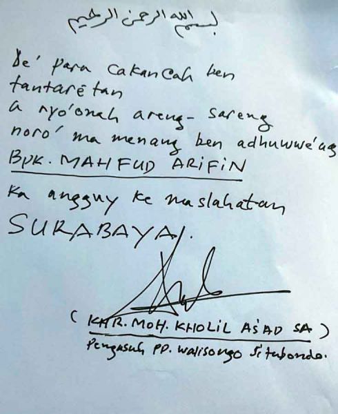 Tulisan tangan dari Ra Kholil ini berbahasa Madura.