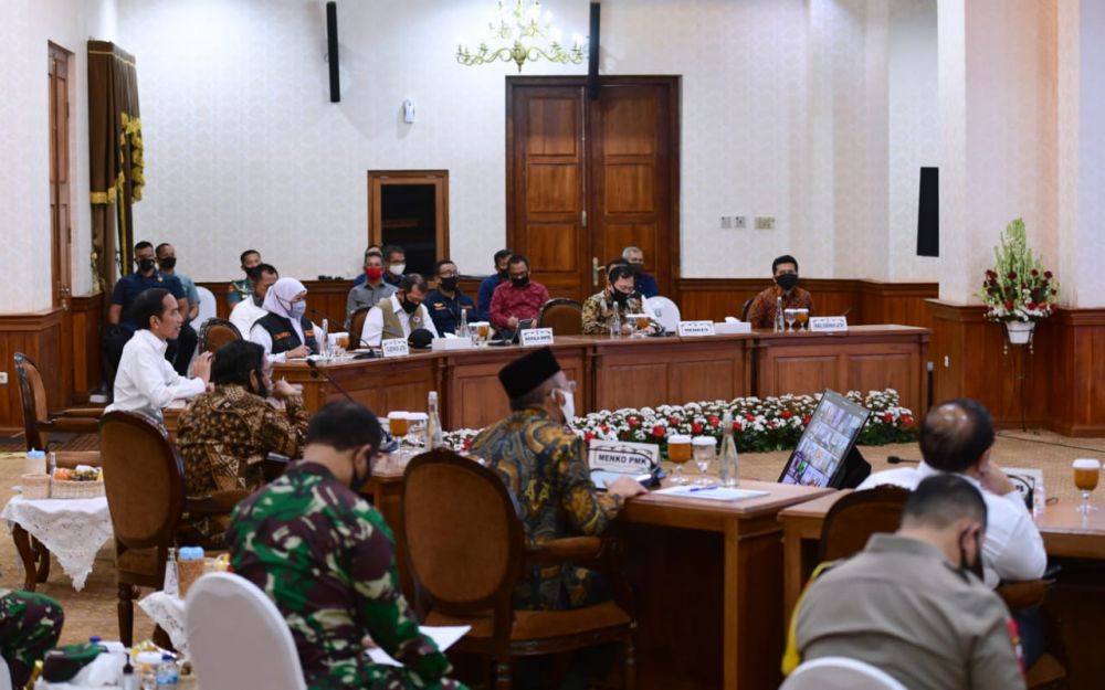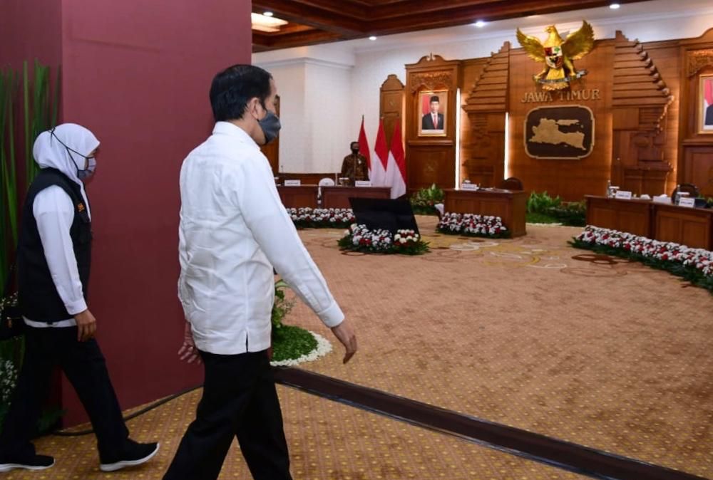 Jokowi meminta dua minggu agar angka kasus positif Covid-19 di Jawa Timur dan khususnya Surabaya Raya turun