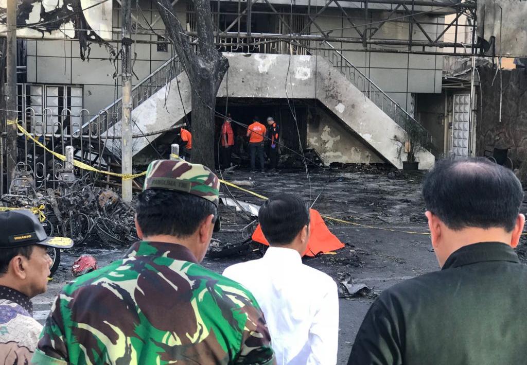 Tak butuh waktu lama, selang beberapa jam Presiden Joko Widodo bersama pucuk pimpinan keamanan Negara, diantaranya Kapolri Jenderal Tito Karnavian, Panglima TNI Marsekal Hadi Tjahjanto, serta Kepala Badan Intelijen Negara (BIN) Budi Gunawan, mendatangi lokasi bom bunuh diri di Surabaya.