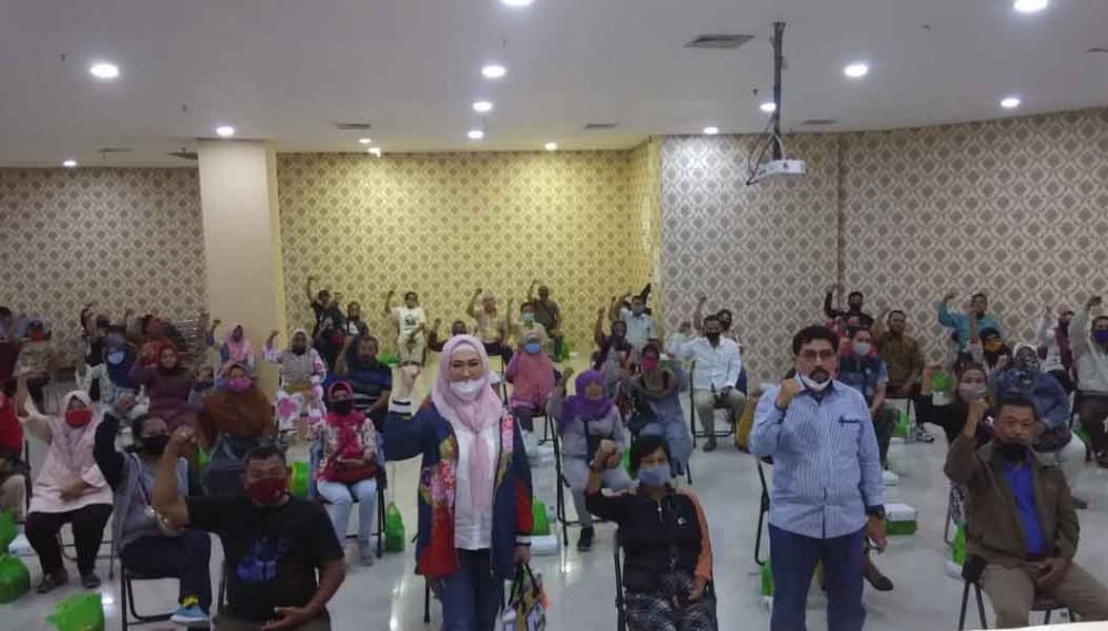 Machfud Arifin bersama istrinya Ny Lita Machfud Arifin menyapa para relawan Remaas