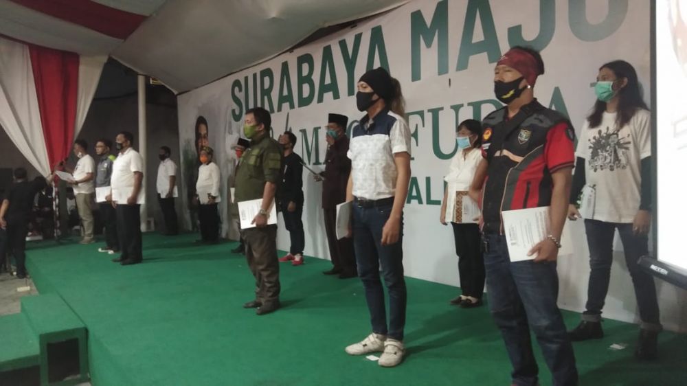Sebanyak 13 relawan dari berbagai komunitas diresmikan menjadi relawan pendukung Machfud Arifin. Setiap relawan masing-masing membawa 10 perwakilan.