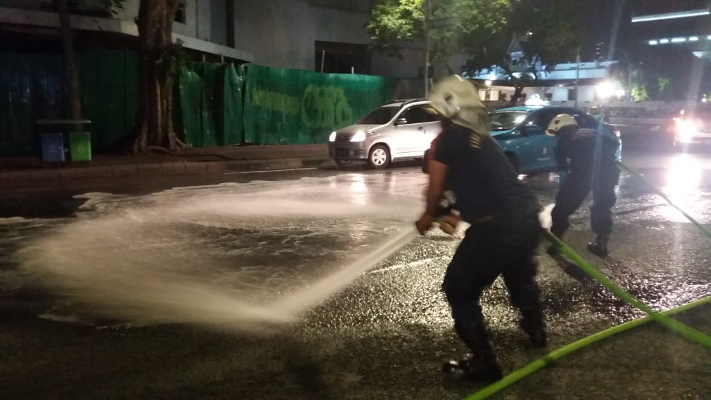 Sementara itu, pantauan jatimnow.com di lokasi satu unit mobil pemadam kebakaran terlihat membersihakn ceceran semen yang membahayakan pengendara.