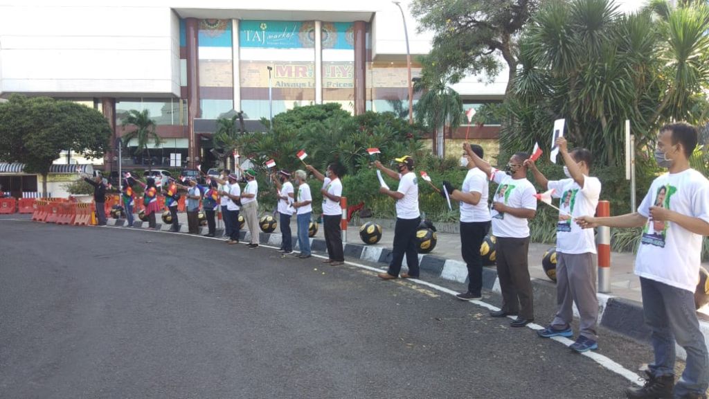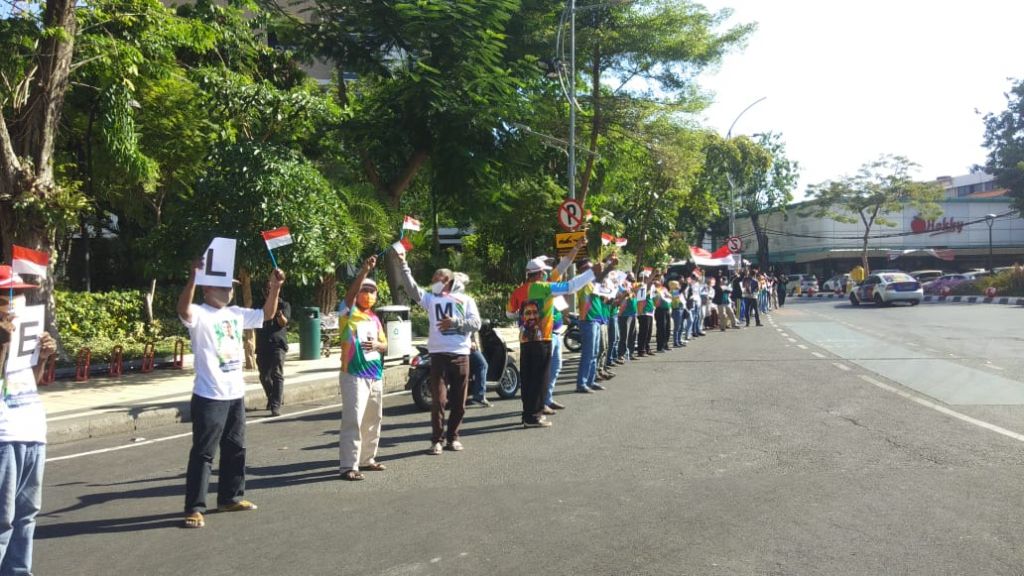 Di setiap titik itu, para relawan berbaris dengan formasi berjarak 2 meter sesuai protokol physical distancing yang ditetapkan WHO.