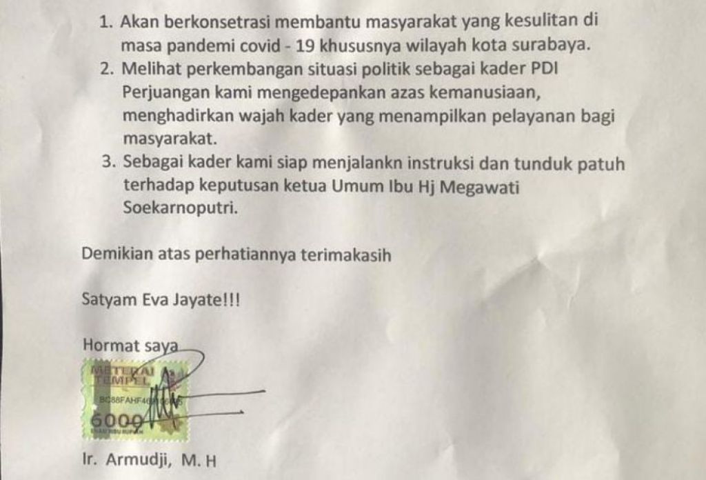 Beredar surat mundur yang ada tanda tangan Armudji di atas meterai