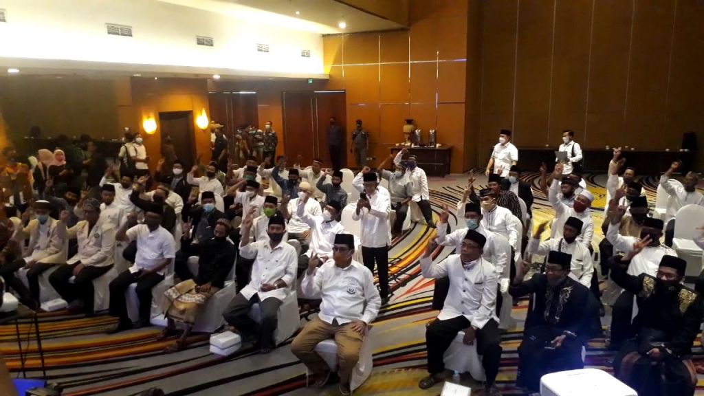 Bahkan deklarasi dibagi menjadi 4 ruangan berbeda di Hotel Mercure Surabaya, yang masing-masing ruangan berisi 50 orang.