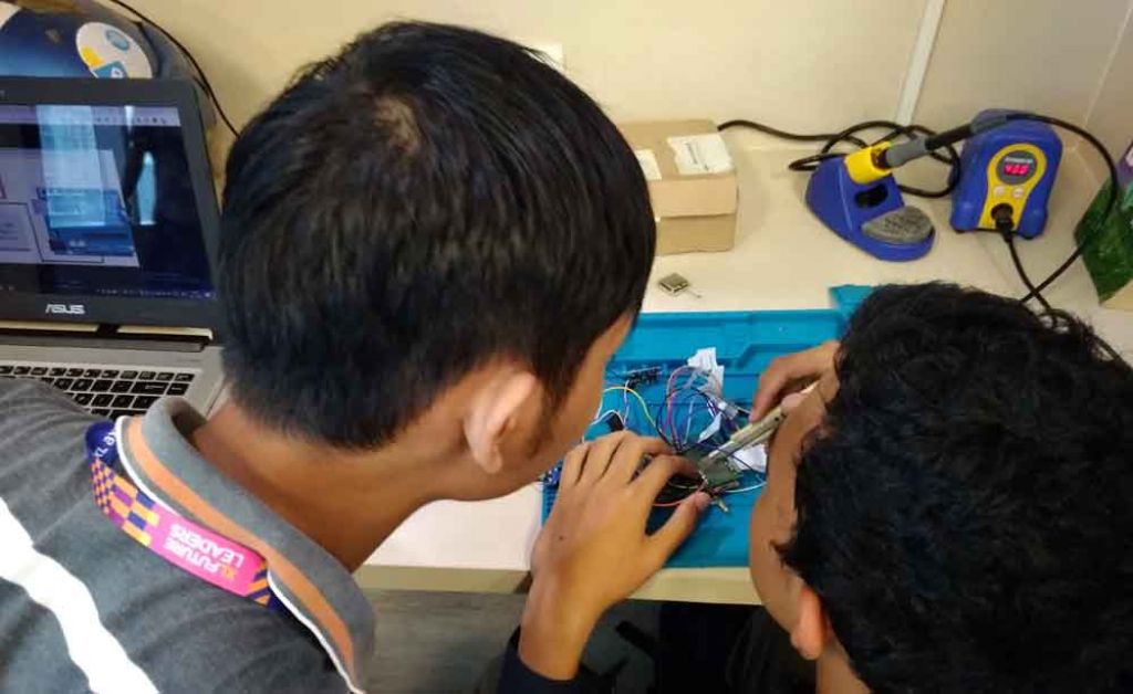 Dalam menggarap proyek IoT, para mahasiswa XLFL mendapatkan bimbingan dari X-Camp, laboratorium pengembangan IoT pertama di Asia Tenggara yang disertifikasi oleh GSMA dan dimiliki XL Axiata.