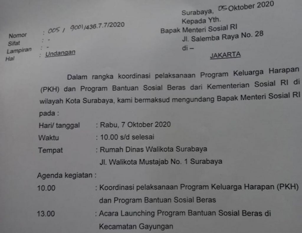 Undangan dari Wali Kota Surabaya Tri Rismaharini kepada Menteri Sosial yang beredar
