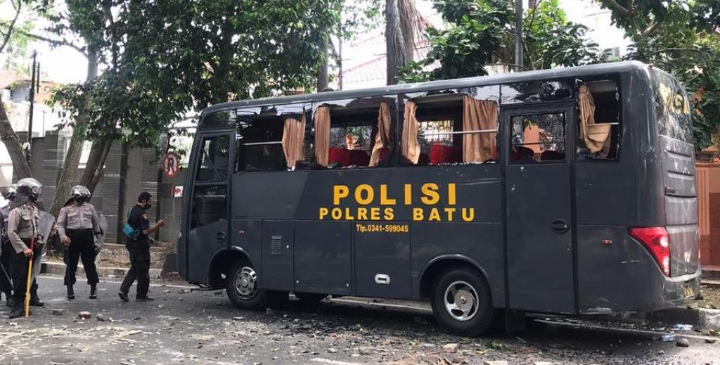 Bus Polres Batu yang ikut membantu pengamanan pihak Polresta Malang tak luput dari serangan dan hancur di bagian kacanya. Sementara untuk pendemo yang terluka, telah mendapatkan perawatan.