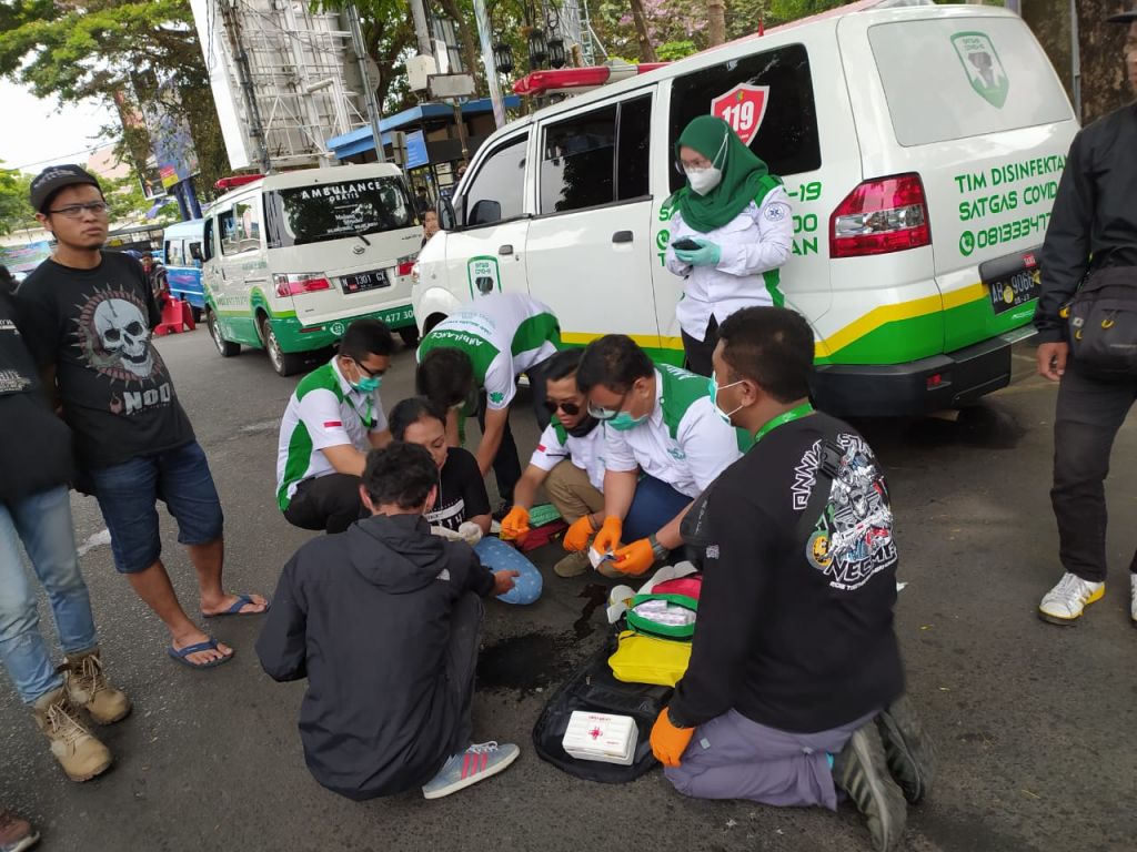 Selain membakar ban, massa juga melakukan lemparan petasan, botol, dan batu.