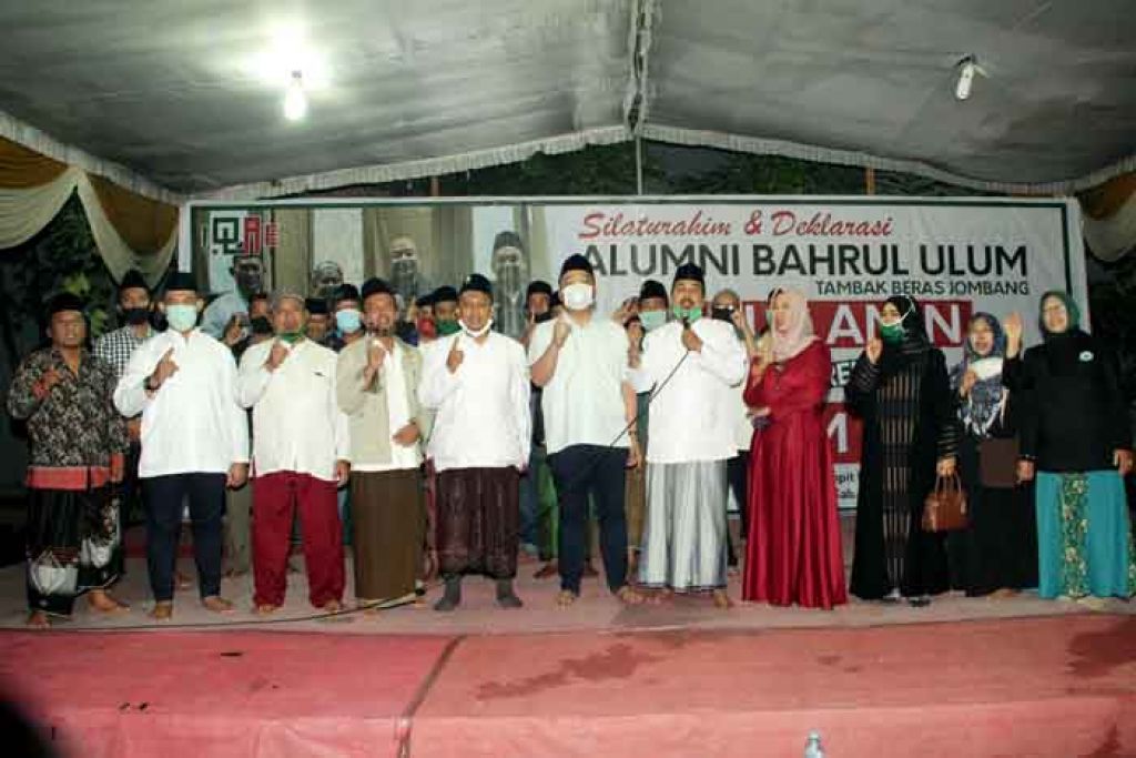 jatimnow.com - Alumni Pondok Pesantren (Ponpes) Bahrul Ulum, Tambak Beras Kabupaten Jombang yang tinggal di Gresik mendukung pasangan calon Qosim-Alif (QA) dalam Pemilihan Bupati Gresik (Pilbup) 2020.