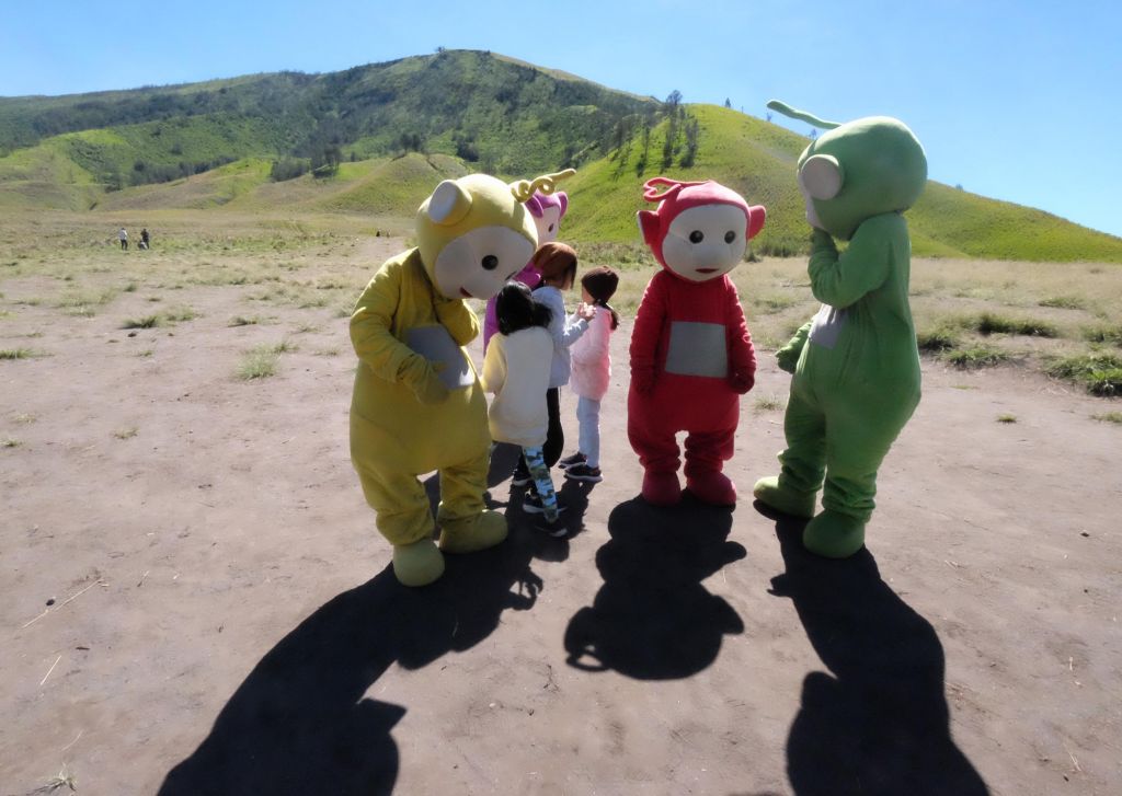 Warga Suku Tengger kreatif mencari nafkah dari dunia pariwisata. Mereka, misalnya megenakan kostum Boneka Teletubies di Bukit Teletubies. Dan mendapat uang dari wisatawan yang foto bersama mereka.