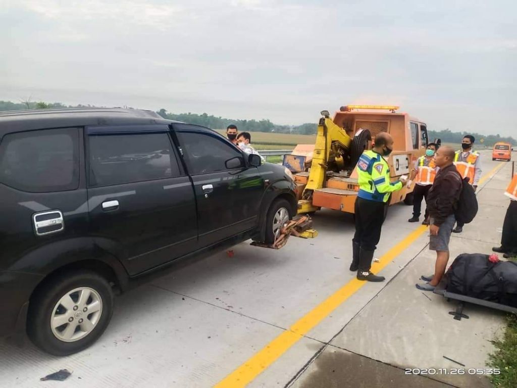 jatimnow.com - Mobil Toyota Avanza bernopol AG 1963 A menabrak dari belakang truk tronton dengan nopol DA 8137 TAO di Tol Jombang-Mojokerto (Jomo), Kamis (26/11/2020).