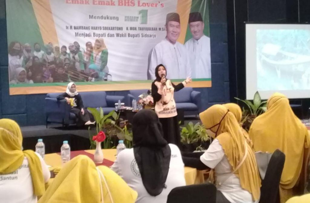 Ajakan dari Yuk Lia, sapaan akrab Asrilia Kurniati itu kepada BHS Lover's itu karena emak-emak ini telah bekerja keras untuk menggaet suara demi kemenangan calon bupati dan calon wakil bupati Sidoarjo nomor urut satu BHS-Taufiqulbar.