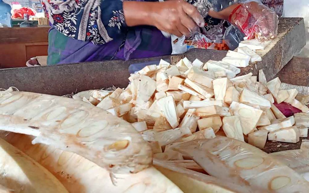 "Biasanya kami hanya mendatangkan stok nangka muda dari Madura saja. Tapi karena nangka di Madura sudah pada masak maka sebagai alternatifnya kami mendatangkan nangka muda dari Bali," kata salah satu pedagang sayur PIOS di Blok F, Samsuri, Selasa (29/12/2020).