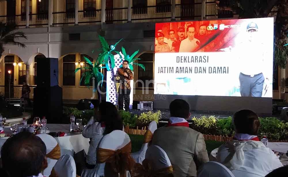 Dalam acara yang dihadiri Gubernur Jatim Soekarwo, Pangdam V Brawijaya Mayjen TNI Arif Rahman, Kapolda Jatim Irjen Pol Machfud Arifin, serta pejabat utama polda dan Pemprov Jatim, Forkas Pengusaha Jatim menggelar Deklarasi Jawa Timur Aman dan Damai.