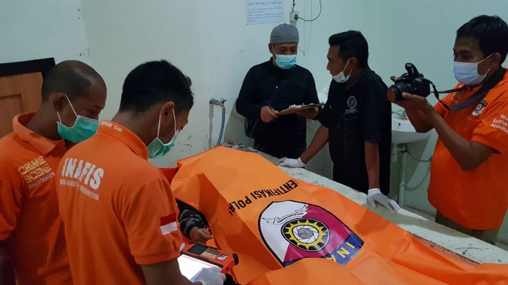 Polisi yang mendapat laporan kemudian mendatangi lokasi. Tim identifikasi melakukan olah TKP dan mengevakuasi korban.