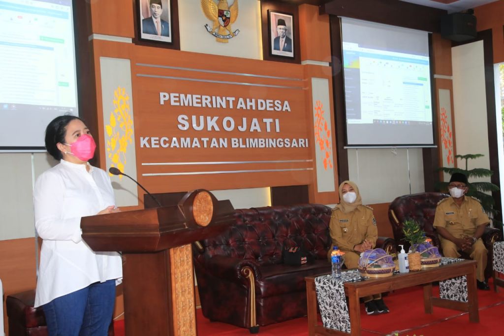 Didampingi Bupati Banyuwangi Ipuk Fiestiandani dan Wakil Bupati Sugirah, Puan mengunjungi kantor Desa Sukojati, Kecamatan Blimbingsari.