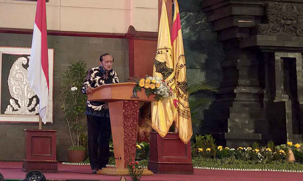 Dia berpesan mahasiswa UWKS harus tanggap terhadap perubahan, senantiasa Jamu Jati Kendi (jaga mulut, jaga hati, kendali diri), melestarikan alam dan memanusiakan manusia di manapun berada.