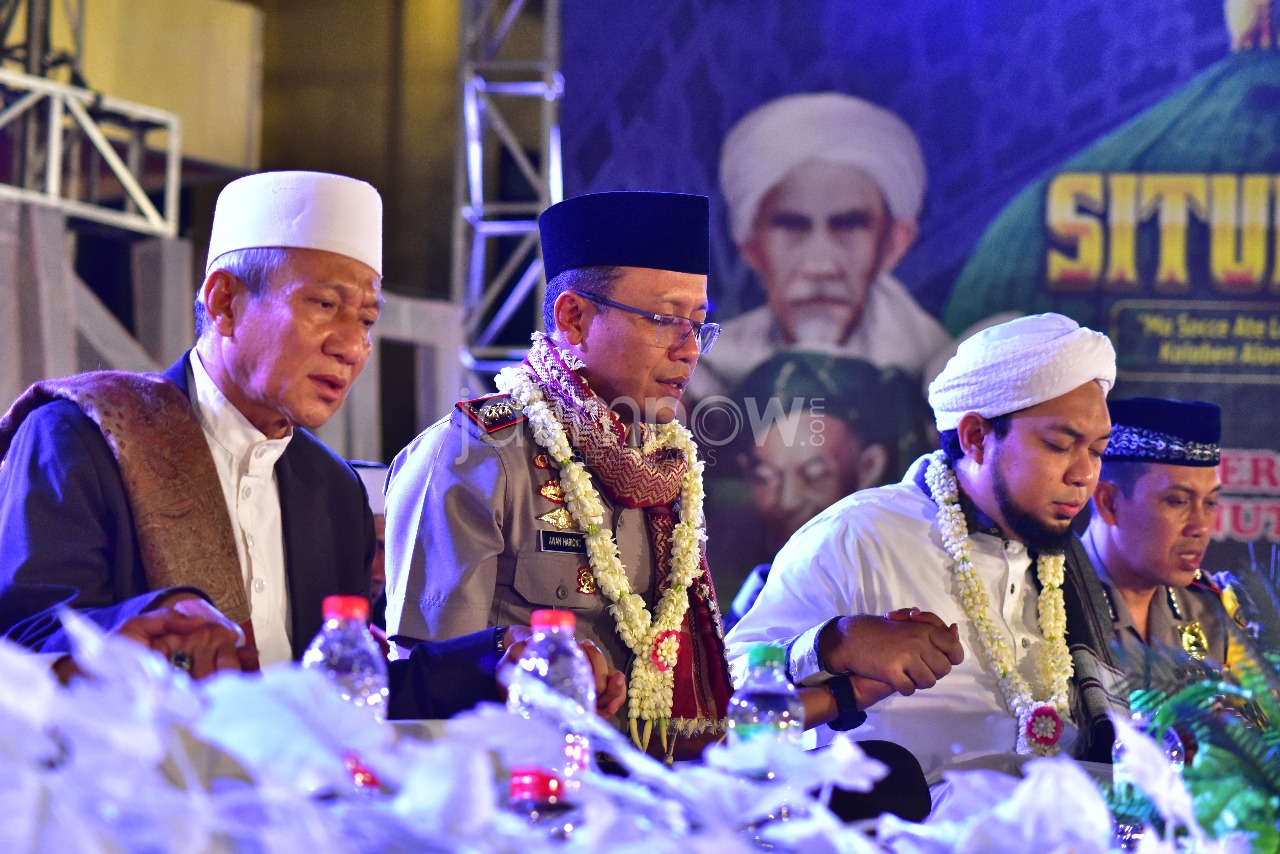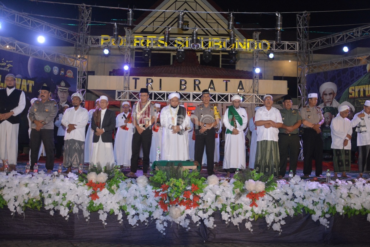 jatimnow.com – Jajaran Polres Situbondo menggelar Situbondo Bersolawat untuk bangsa di halaman Mapolres, Senin (11/6/2018) malam. Acara yang dihadiri oleh sekitar 15 ribu jamaah itu digelar dalam rangka malam nuzulul Quran dan HUT Bhayangkara ke-72 di Situbondo.