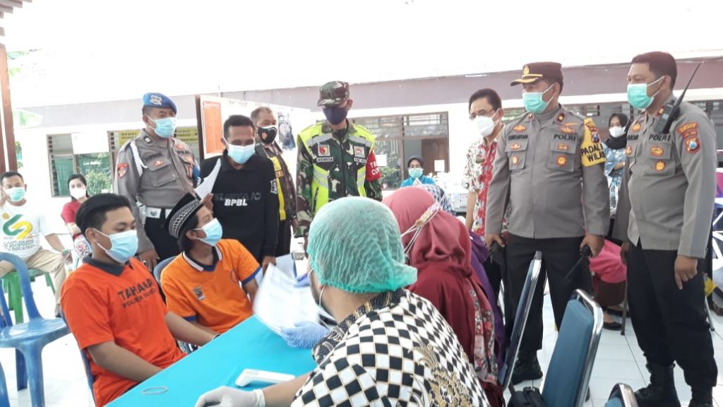 Vaksinasi tersebut, digelar untuk mencegah penyebaran Covid-19 di lingkungan tahanan Polsek Sukolilo.