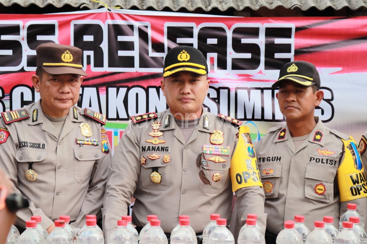 jatimnow.com - Penggerebekkan terhadap home industry Miras jenis arak ini diungkap langsung oleh Kapolres Tuban AKBP Nanang Haryono, Kamis (21/6/2018).