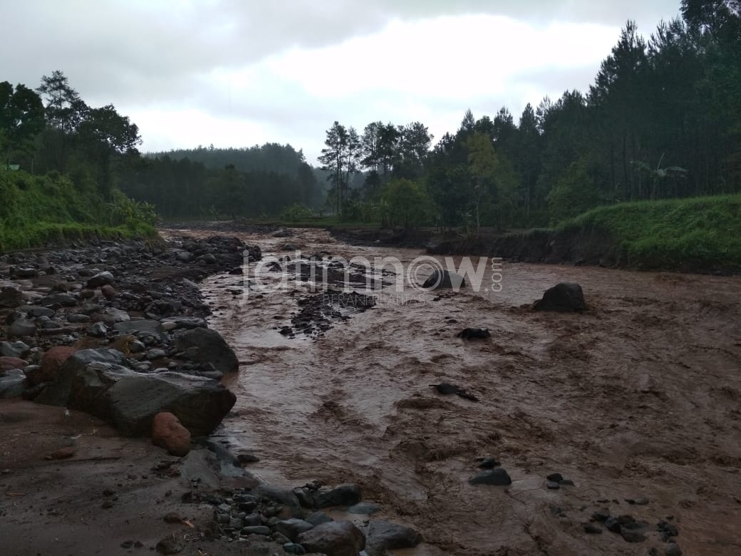 jatimnow,com - Banjir bandang kembali terjadi di lima aliran sungai yang berhulu di dataran tinggi Gunung Raung di Kecamatan Songgon, Banyuwangi. Akibatnya, sepanjang bantaran sungai tersebut mengalami kerusakan parah.
