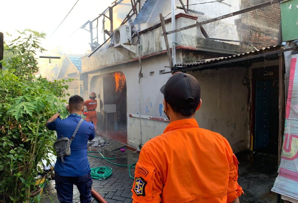 Surabaya - Rumah semi permanen berlantai dua di Jalan Kupang Gunung Timur VII No 33, Surabaya terbakar, Selasa (8//2/2022) pagi.