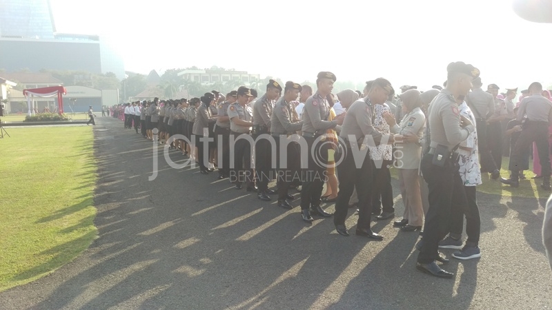 Upacara yang dipimpin oleh Wakapolda Jatim Brigjen Pol Widodo Eko Prihastopo itu menaikkan pangkat 1.205 personel.