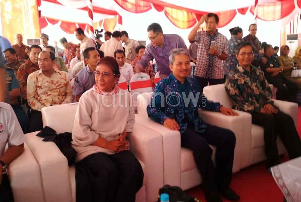 jatimnow.com - Menteri Kelautan dan Perikanan Republik Indonesia Susi Pudjiastuti luncurkan kapal bambu laminasi karya Institut Teknologi Sepuluh Nopember (ITS) Surabaya, Senin (2/7/2018).