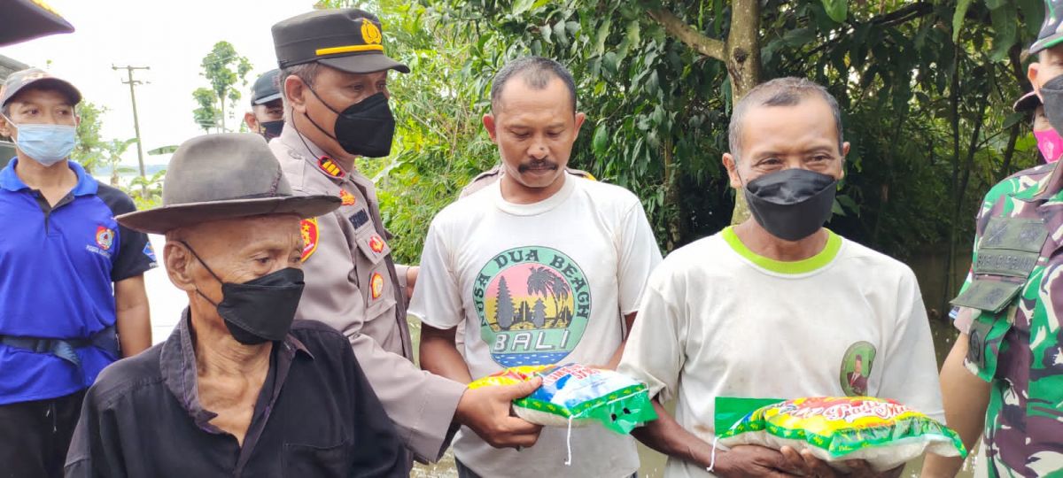Jember - Polres Jember dan Kodim 0824 Jember menggelar baksi sosial terhadap korban banjir di sejumlah titik yang masih terdampak, Selasa (22/3/2022). Salah satunya di Kecamatan Sumberbaru.