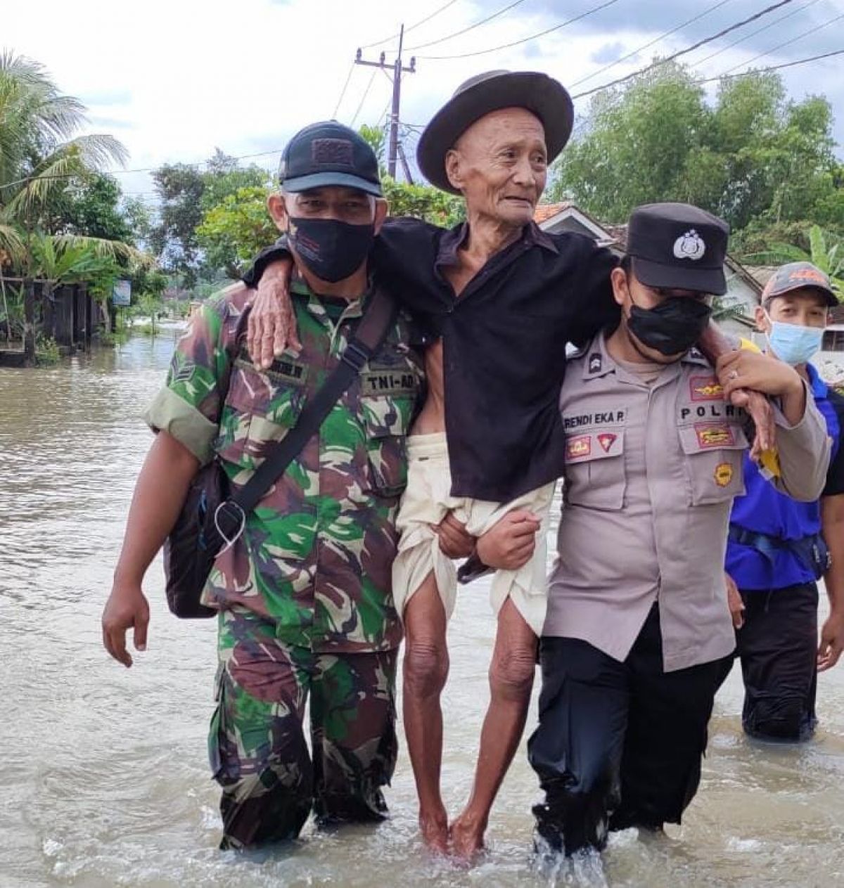 Saat petugas gabungan datang, Mbah Hamim langsung dibopong melewati banjir, dievakuasi ke posko. Kemudian diberikan bantuan sembako bersama warga lainnya.