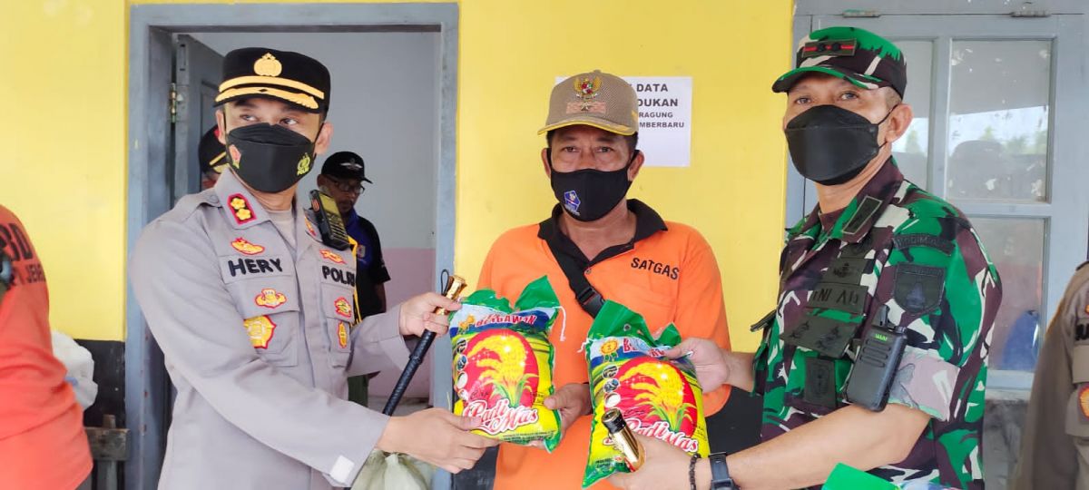 Selain memberikan bantuan tenaga, petugas gabungan itu juga memberikan bantuan berupa sembako, berupa beras hingga pakaian.