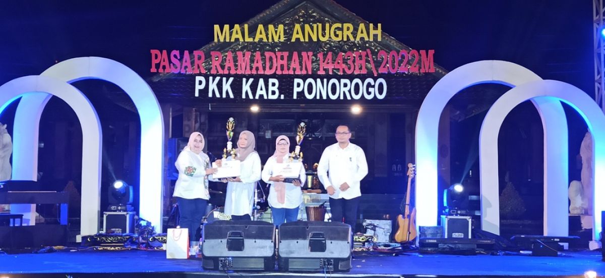 Ponorogo - Tim Penggerak Pemberdayaan Kesejahteraan Keluarga (PKK) Kabupaten Ponorogo menggelar malam Anugerah Pasar Ramadan, Jumat (27/5/2022). Ini adalah salah satu cara Pemerintah Kabupaten (pemkab) Ponorogo memutar roda perekonomian. Penganugerahan juga bentuk apresiasi kepada penggerak PKK di tingkat desa saat menyelenggarakan Pasar Ramadan 1443/2022 lalu.